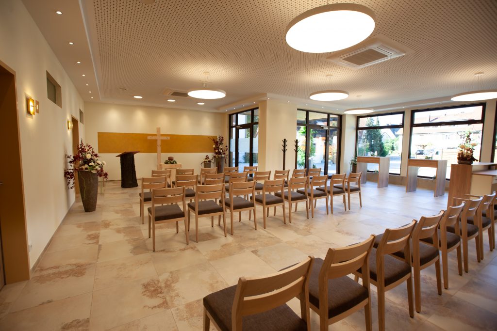 Unsere Erfahrungen zeigen, dass es für die Trauerbewältigung hilfreich sein kann, in Ruhe Abschied vom Verstorbenen zu nehmen. Darum bieten wir Ihnen die Möglichkeit, in einer ruhigen Atmosphäre Lebewohl zu sagen. Unsere Abschiedsräume befinden sich im Haus der Erinnerung.